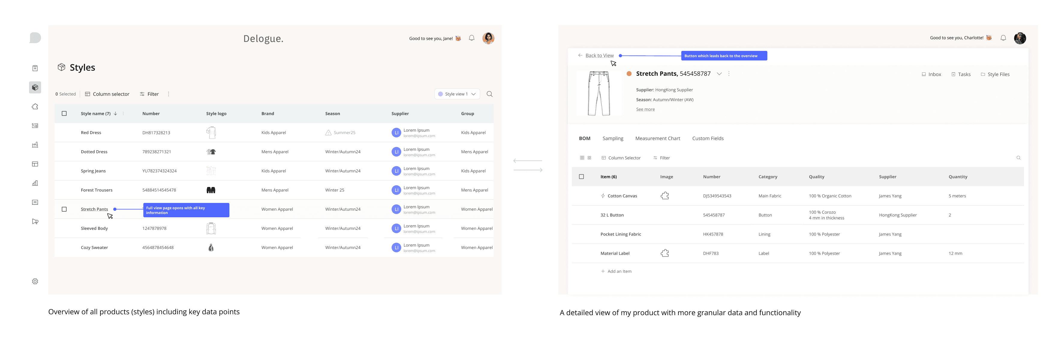 Current flow: Users must return to the overview each time they want to view a different product, creating friction and breaking focus.